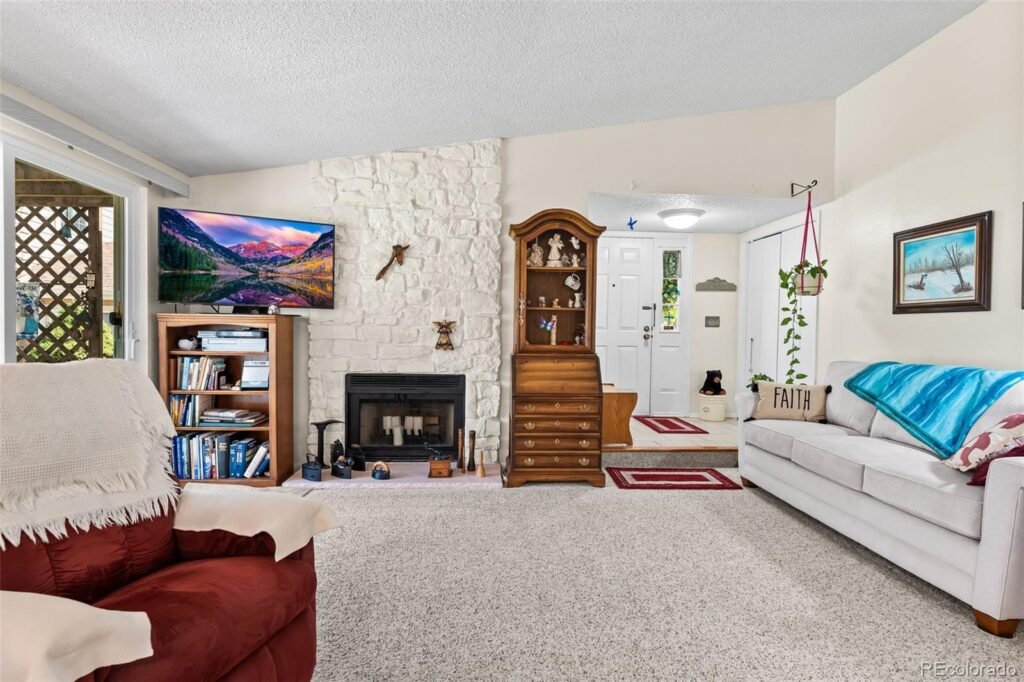 Welcome to this charming ranch-style end-unit townhome, offering the perfect blend of comfort and low-maintenance living. Nestled in a quiet community, this home enjoys a peaceful setting with a private patio backing to the greenbelt. Inside, vaulted ceilings and updated windows and doors fill the space with natural light. The inviting family room features a cozy fireplace, seamlessly connected to the kitchen with modern shaker cabinets and a convenient pass-through.