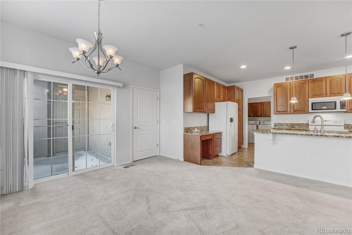 Fantastic Opportunity in Dancing Willows!Welcome to this well-designed condominium offering an open floor plan and generously sized rooms, perfect for comfortable everyday living. The kitchen features a center island and opens seamlessly to the main living area, ideal for entertaining or relaxing at home. The spacious primary suite includes a walk-in closet and a private five-piece bath. An attached garage provides direct access to the unit through a convenient laundry/mudroom.Enjoy a quiet, private location within the community along with a peaceful deck for outdoor enjoyment. Dancing Willows offers outstanding amenities including a pool, clubhouse, trails, and park—perfect for a low-maintenance lifestyle. Ideally located in Littleton with quick access to C-470, Red Rocks, mountain adventures, shopping, and downtown Littleton. A wonderful place to call home!